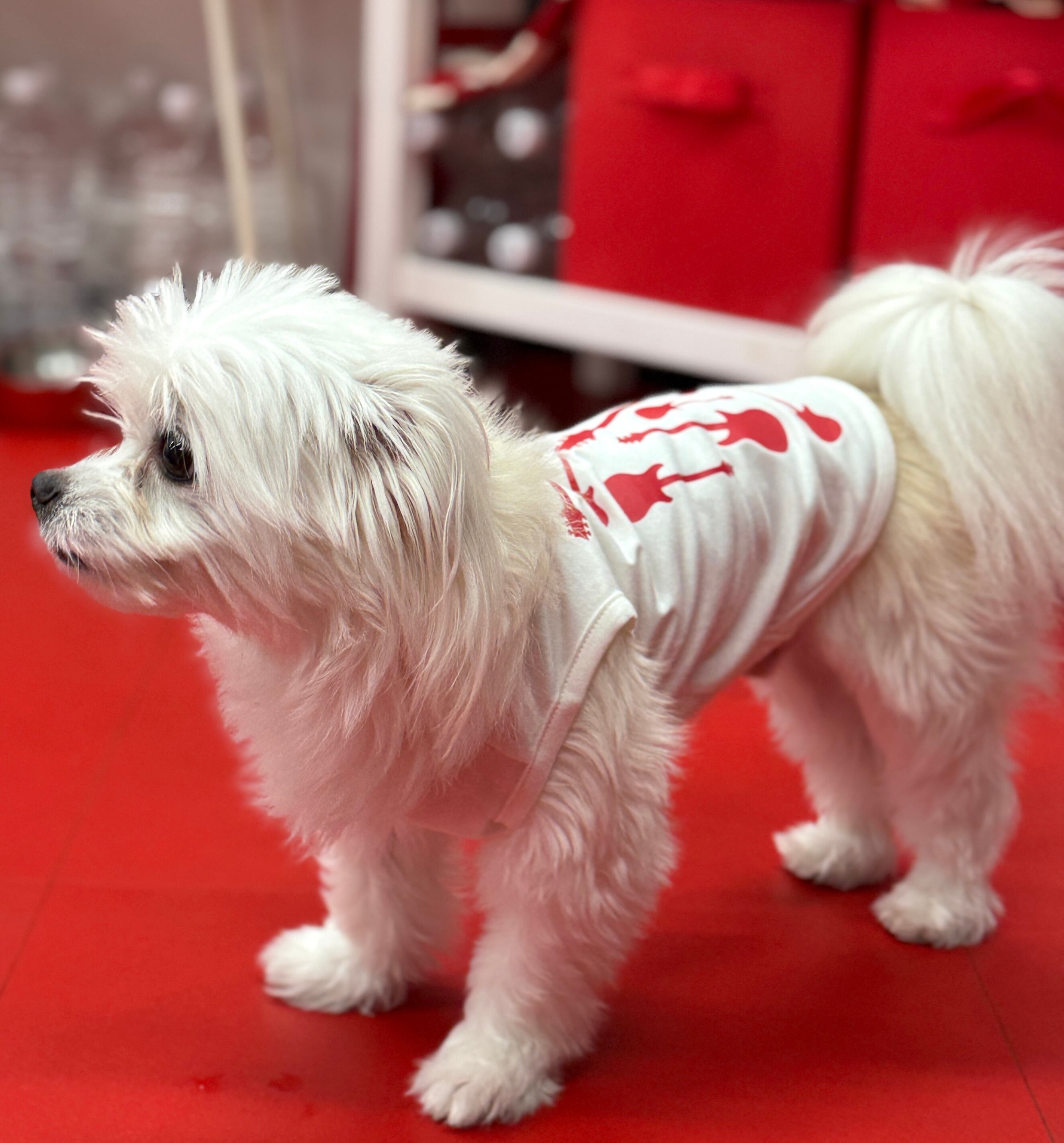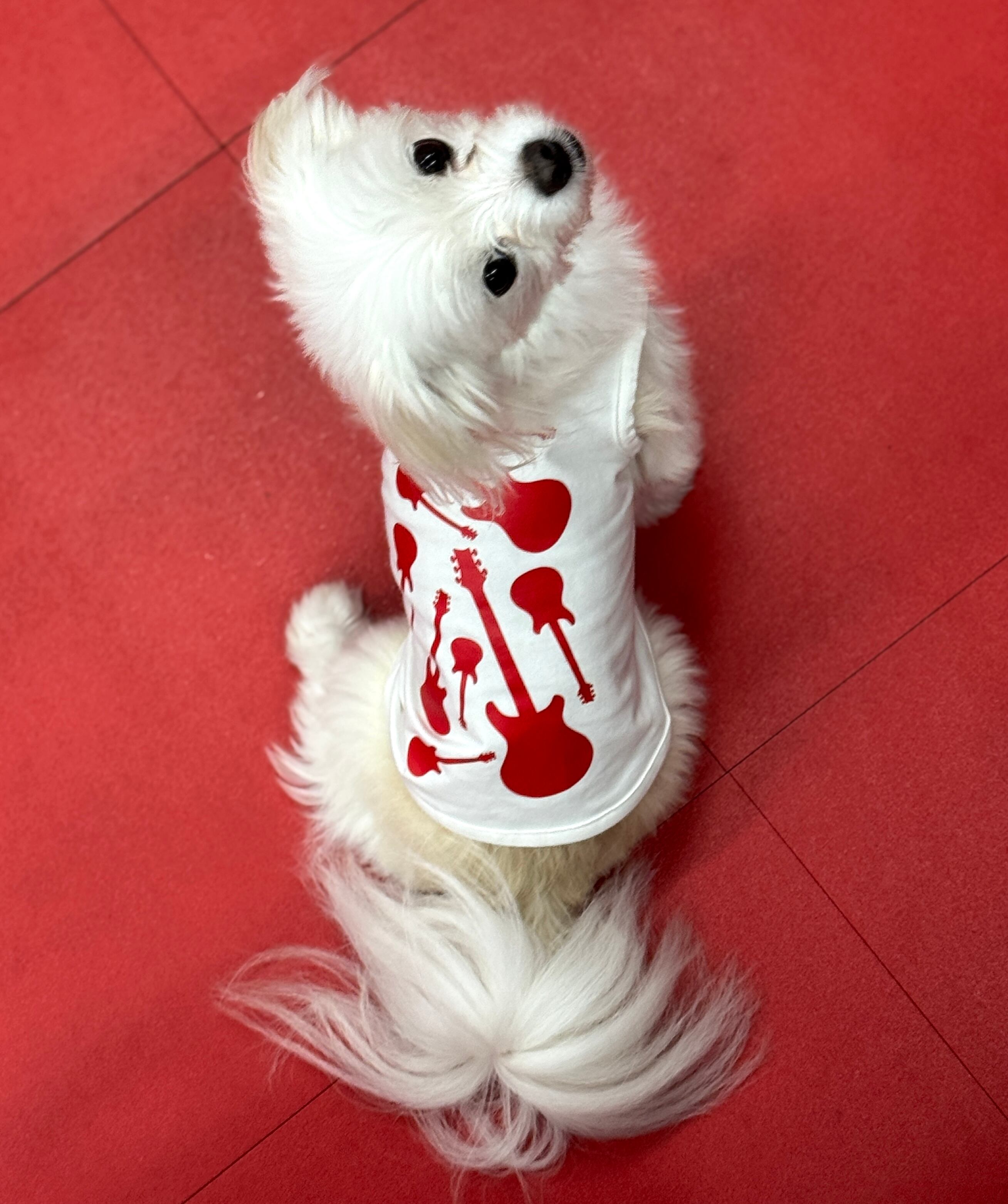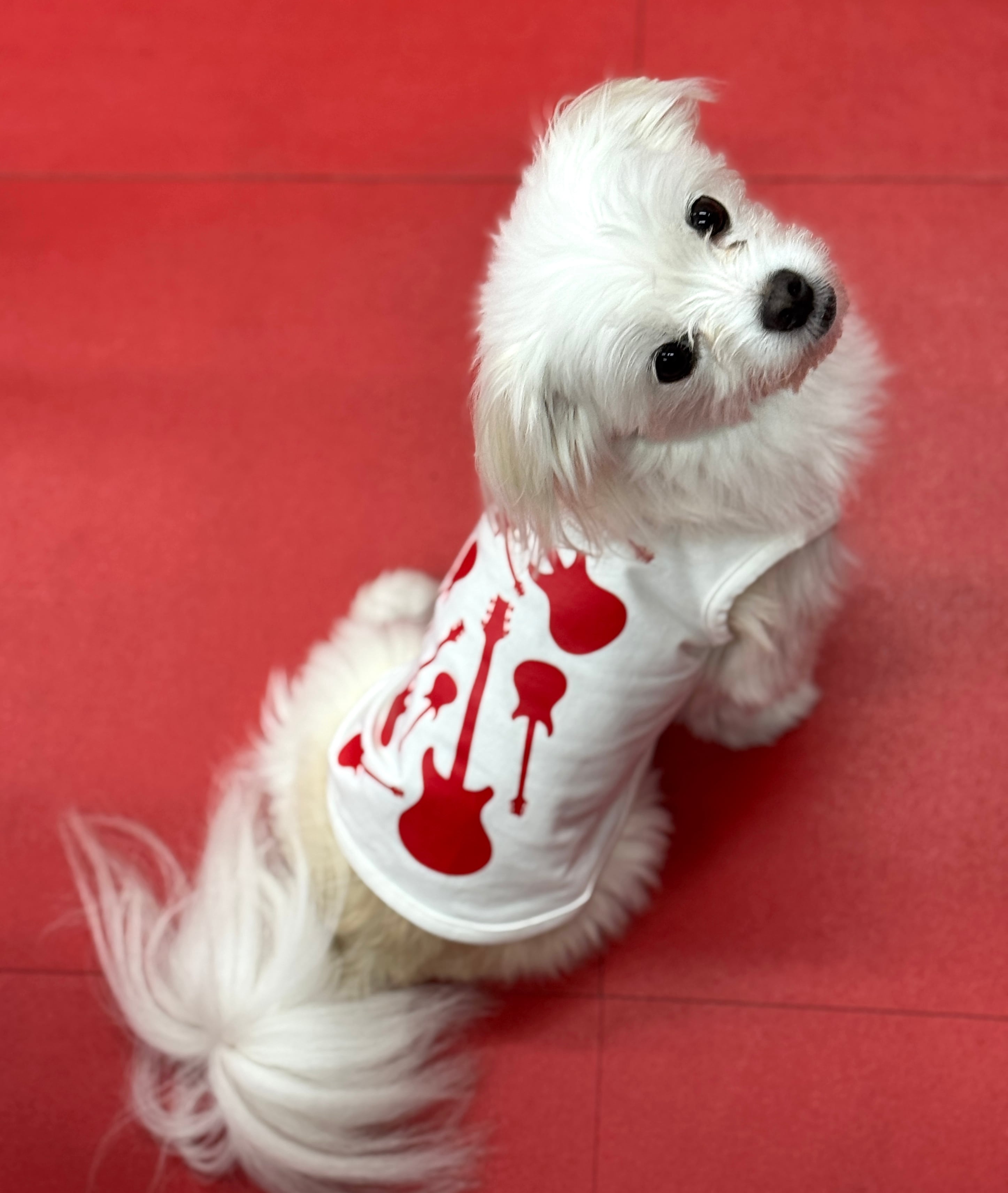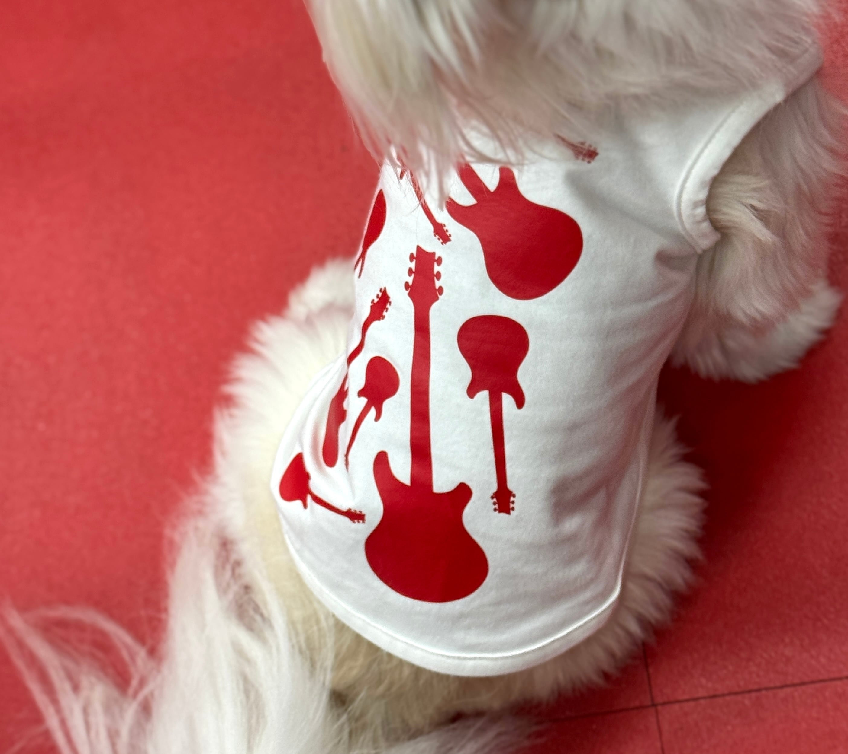 おしゃれなワンちゃんにぴったりの「ワンちゃん用 ギターデザインタンクトップ」が新登場!ギターをモチーフにした可愛らしいデザインが特徴で、愛犬の個性を引き立ててくれるアイテムです。軽やかなタンクトップは、夏の暑い日にも最適で、スタイリッシュに決まります!